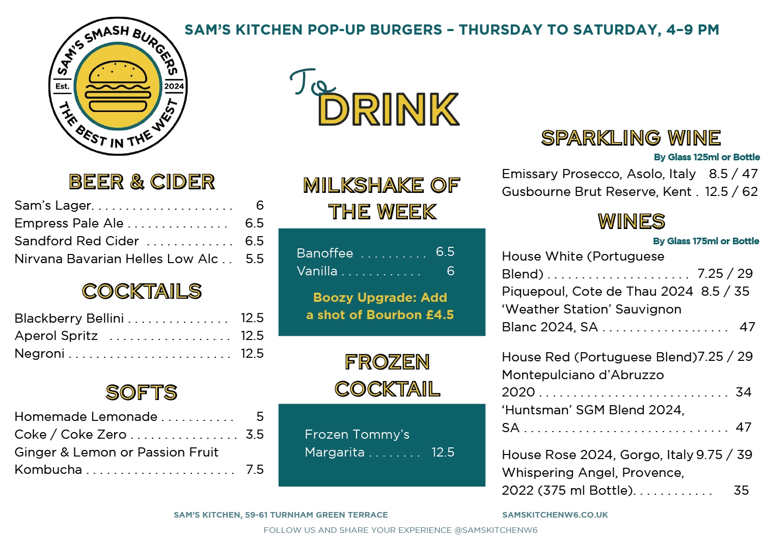 Join us for your smash burger fix, along with loaded fries, beers and cocktails, every Thursday - Saturday, 4pm-9pm.